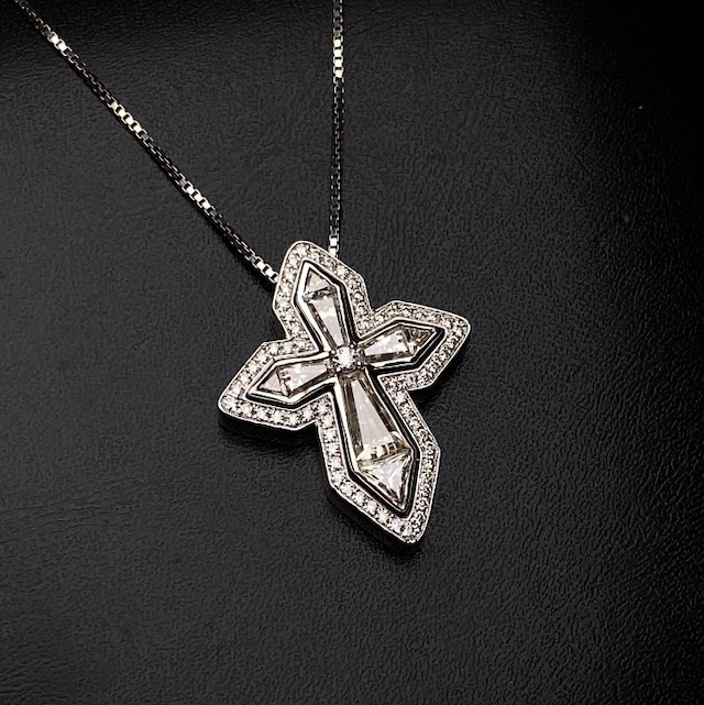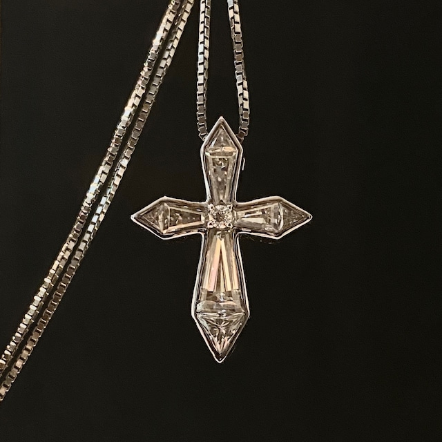 【大人クールなネックレス】バゲットクロス Silver925 プラチナ加工【KT24625】